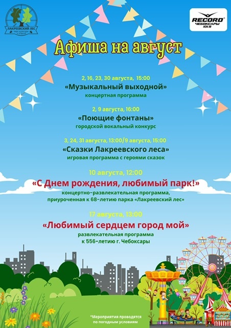 Присоединяйтесь к нам в Лакреевском парке в августе! Ждем вас на мероприятиях! Не упустите шанс создать незабываемые воспоминания и повстречать новых друзей!